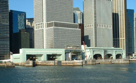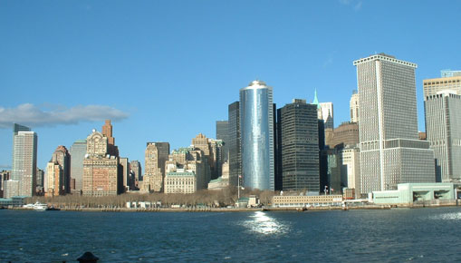 Battery Park from the river. If you look hard you can see Mike's shadow as he takes this snappie.