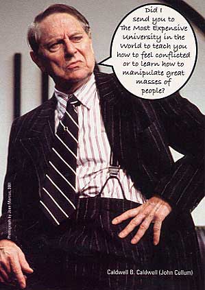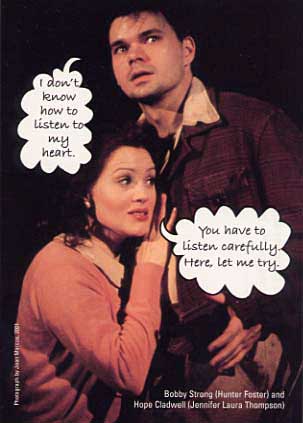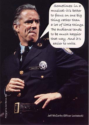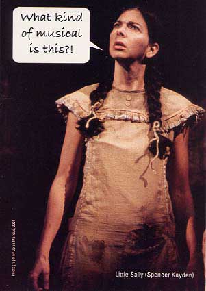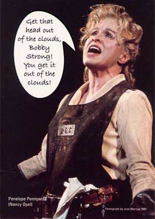 My favorite number of the show followed. In a big upbeat chorus number Bobby sang about Freedom. He started by assuring Tiny Tom: Tiny Tom: I'm frightened. Bobby: As well you should be. Freedom is scary. It's a blast of cool wind that burns your face to wake you up. Tiny Tom: Literally?! Bobby: Yesss!