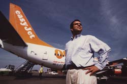 We figured Stelios, the owner(pictured here with hisEasyJet 737)must be somewhere else in the world emptying the other very full fare card machines. He certainly wasn't here at this shop. Only one of the dozen card machines was working. We figured The Producers would be in intermission before we ever got online. We did the next best thing. I stepped out onto 42nd and dialed the 800 number for the MTA. The auto attendant was very well thought out, indeed. In less than two minutes I was having the schedule for outbound trains on our route recited to me. The 6:50pm was going to be the ticket. We headed for the St. James.