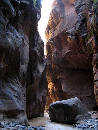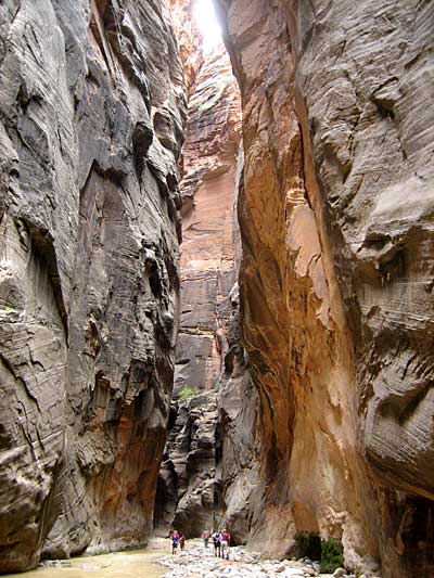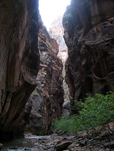 We decided, since we got a late start, to skip the side trip to Orderville Canyon. It wasn't long before the river became very narrow. As we got closer to Wall Street, the vegetation also became thinner.